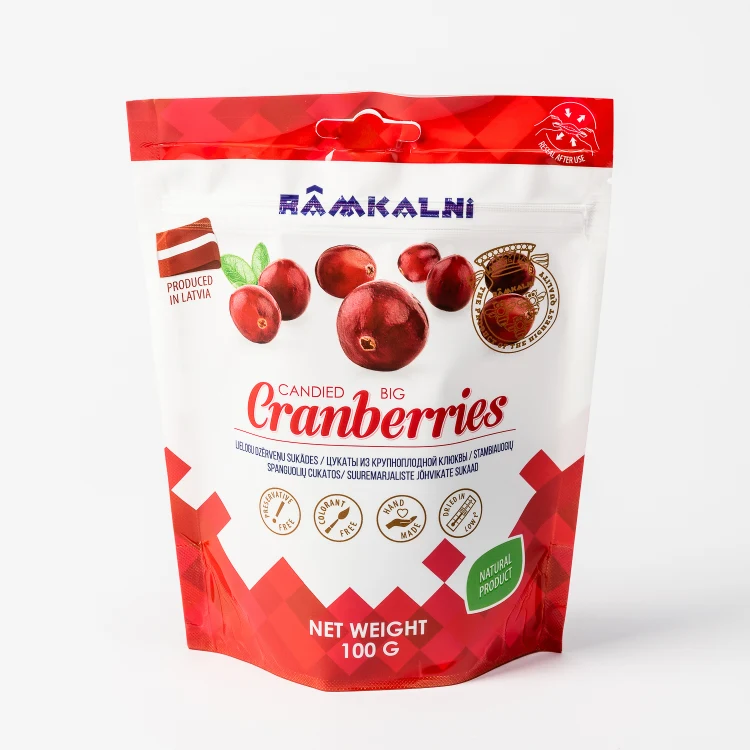 The most popular product of Rāmkalni. Delicious and slightly sour candied fruit made from juicy highbush cranberries. This snack is rich in natural flavour and perfect for both everyday and festive tables. Ideal as a dessert accompaniment.